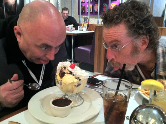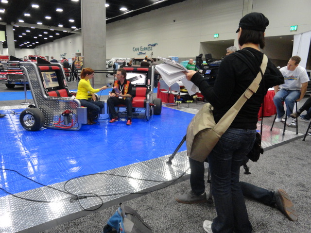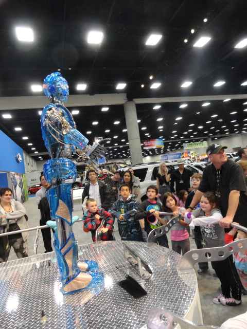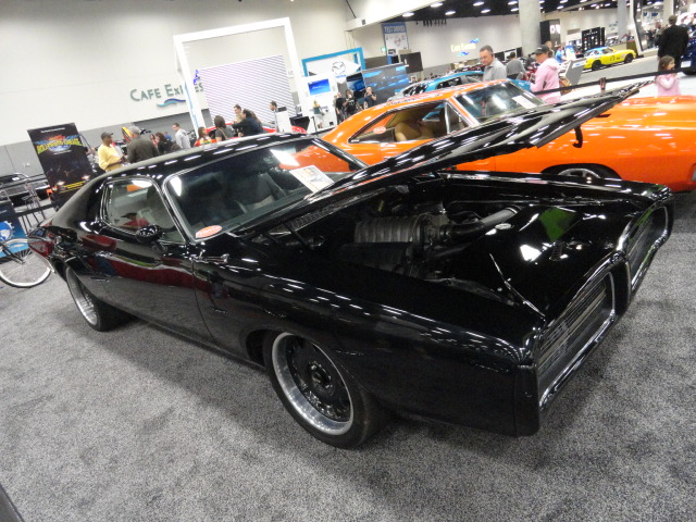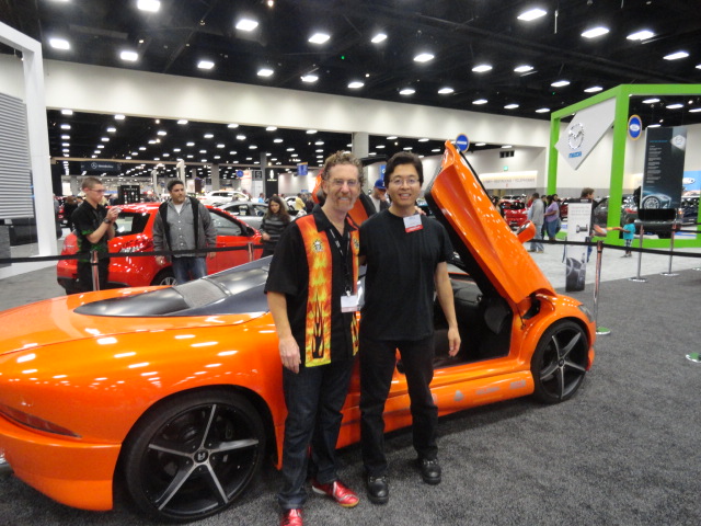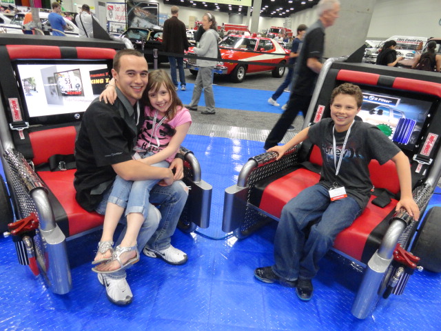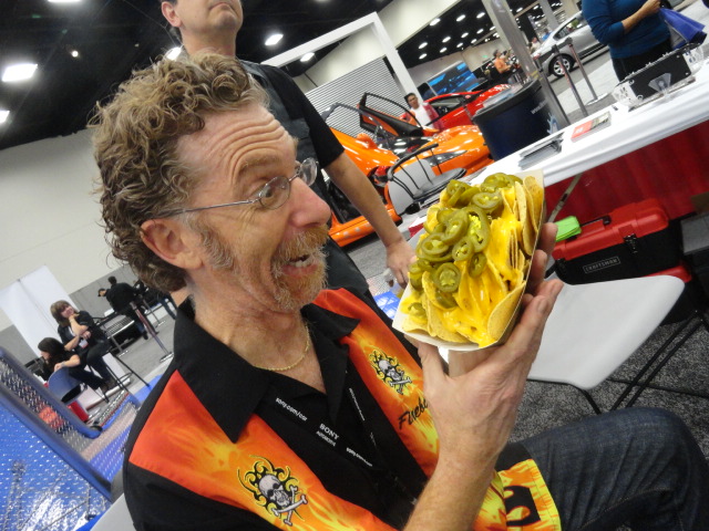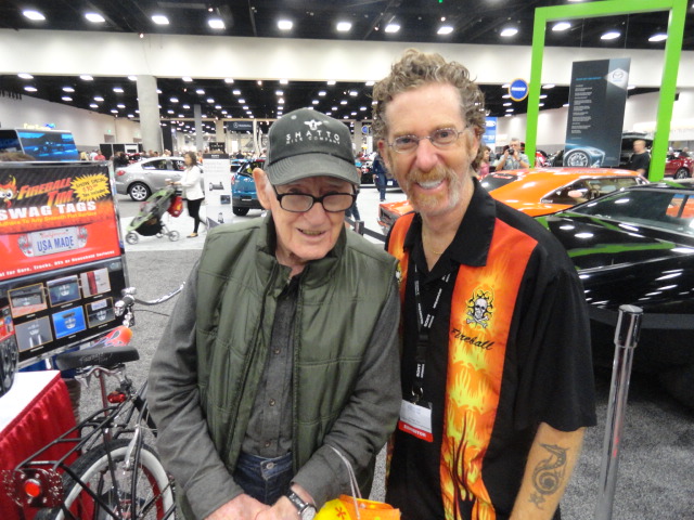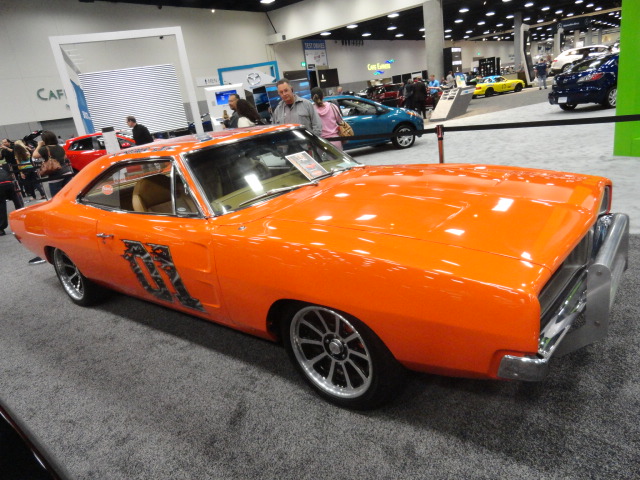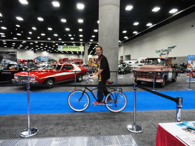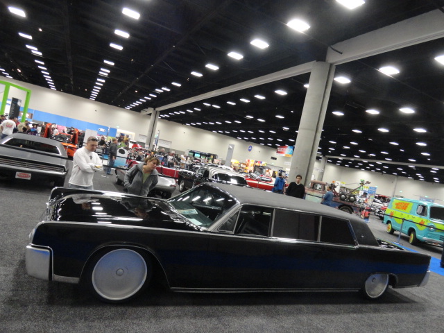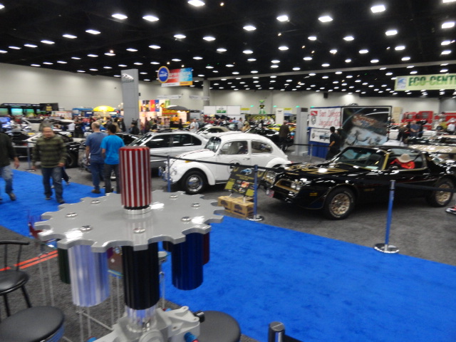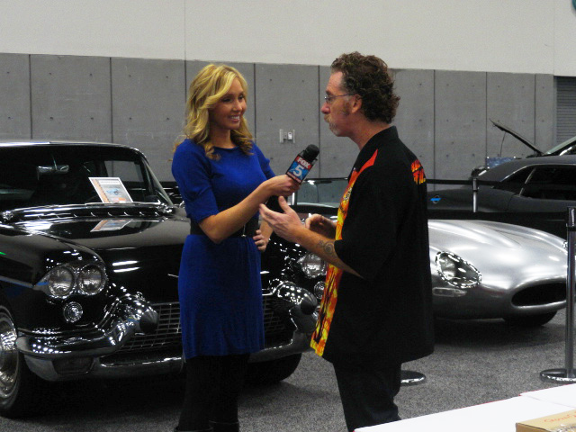 First day of the show…. YIKES! There were peeps everywhere and it was like a pack of wild dogs hungry for automotive coolness. Regardless of the stanchions, people were climbing in, over and around cars like crazy. One lady even got ejected from the show for pullin’ a Dukes of Hazzard on our cool Caddy. (Security had their hands full, man…)