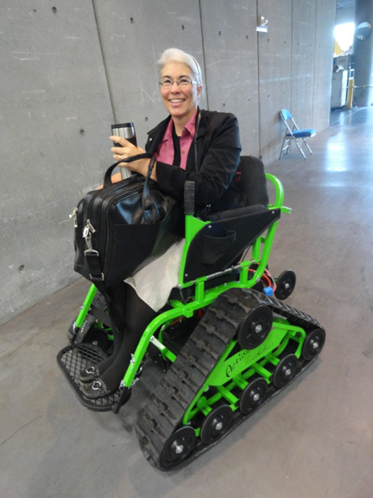 Check out this awesome Tractor Wheel Chair! Imagine one black with flames… ahhhhh…..