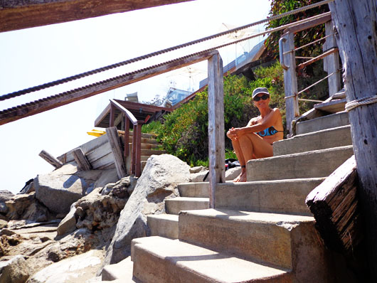 When we go on a trip, she has to find where the water is and where the best coffee is… immediately. When she gets excited, she jumps up and down and looks at me like “Can we? Can we?!!” She surfs, works out like a machine, loves Good n’ Plenty, loves movies with strong female leads, has a black belt and constantly shows me her right bicep as if to say “You want some a this?!”