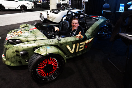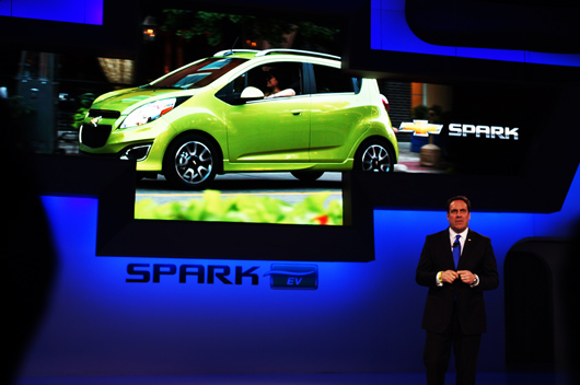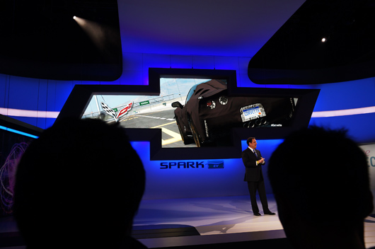 Great stuff from Chevy with the Spark EV. 13 new models coming from them as of January 13th, starting with the Vette. The RAV4 from Toyota, MINI’s new GP, Jag’s new Cabrio, incredible sculpture from Aston Martin (in and out) plus Bond’s original DB5 (Full size and a model), plus a cool new ride from Campagna Motors that I sat in.