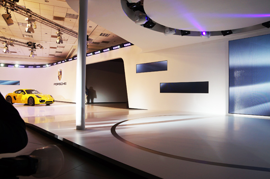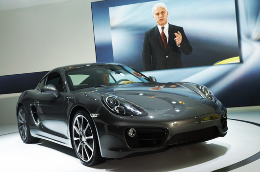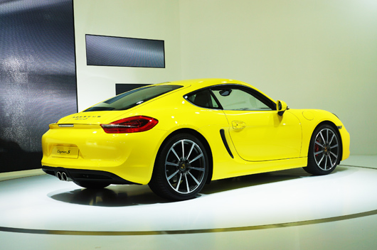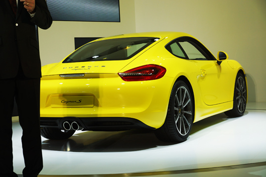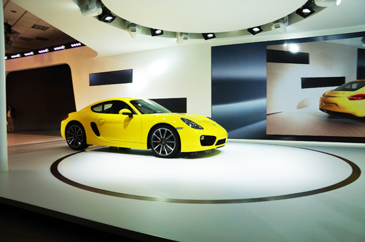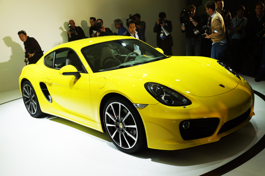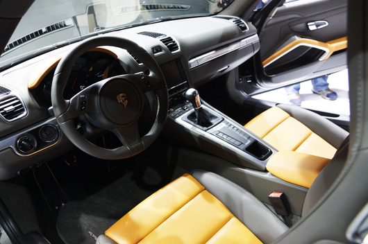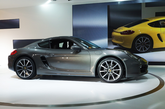 2013 Cayman… screamed into the Auto Show yesterday, chased by a charcoal grey. Wow.