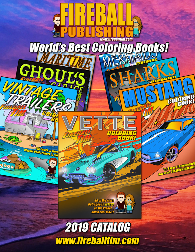 New Years is going to start out with a bang here at Fireball Publishing. Fireball starts the new SURF WOODIE Coloring Book which will be coming out February 1st, he’s got a meeting on Thursday with LIMITED RUNS and the SHELBY CRUISE-IN at the Petersen Museum on Sunday.