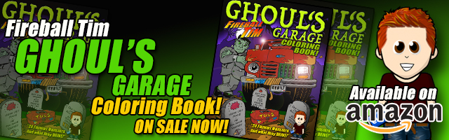 This sketch is from Fireball’s GHOUL’S GARAGE Coloring Book which also features 19 other Hollywood Monsters! Grab a copy on AMAZON!