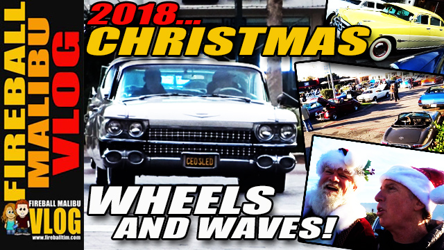 2018 WHEELS AND WAVES CHRISTMAS SHOW – FIREBALL MALIBU VLOG 879 – Fireball Tim’s Wheels and Waves goes off featuring Classic Hudsons and Edsels, Customs, Santa, Celebrities and more. Then Fireball and Kathie hit DTLA for Christmas…